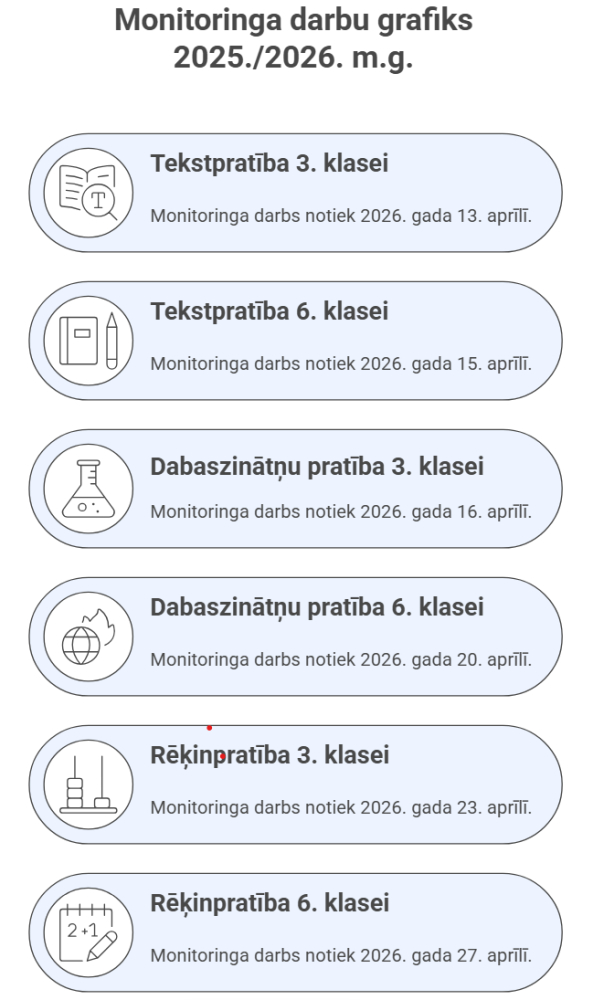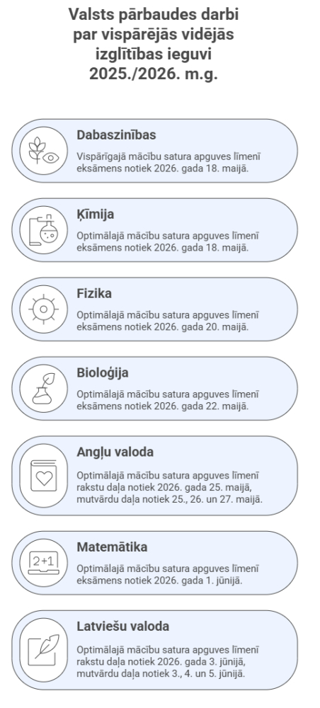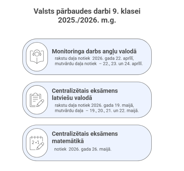 2025. gada 4. novembrī Ministru kabinets apstiprinājis 2025./2026. mācību gada valsts pārbaudes darbu grafiku.