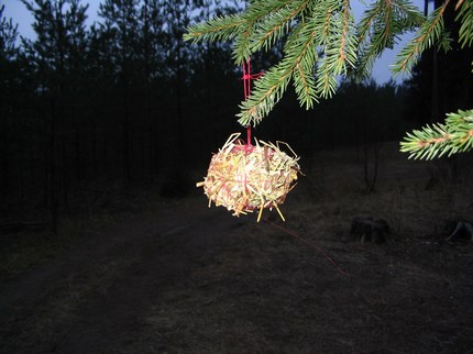 Ķērāmies pie eglītes rotāšanas. Izrādās, rotājumu mums pietika visam mežam!