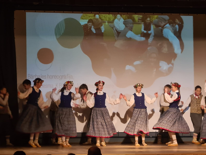 Druvas vidusskolas dejotāji sadanco ar draugiem